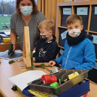 Das diesjährige Weihnachtsbasteln konnte aufgrund der 3G-Regel zum Betreten der Schule auch wieder mit einigen ElternhelferInnen durchgeführt werden. So wurden an unterschiedlichen Stationen, die von den freundlichen Vätern, Müttern und Großeltern betreut wurden, vielen verschiedene Basteleien angefertigt werden, die anschließend zum Schmücken der Schule aufgehängt oder zum Dekorieren eingesetzt wurden.